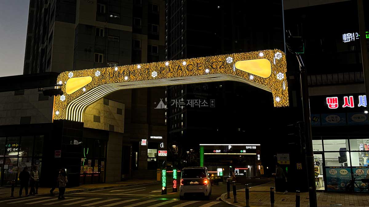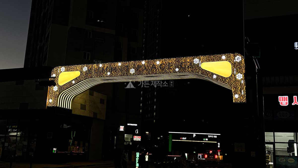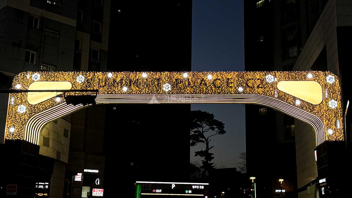제품설명   대상지에 경관조명을 설치함으로써 입주민이 이용할 수 있는 쾌적하고 안전한 야간 보행환경을 조성하였으며 고급스럽고 차별화된 연말 경관 연출을 통해 단지의 품격과 이미지를 강화하였음.