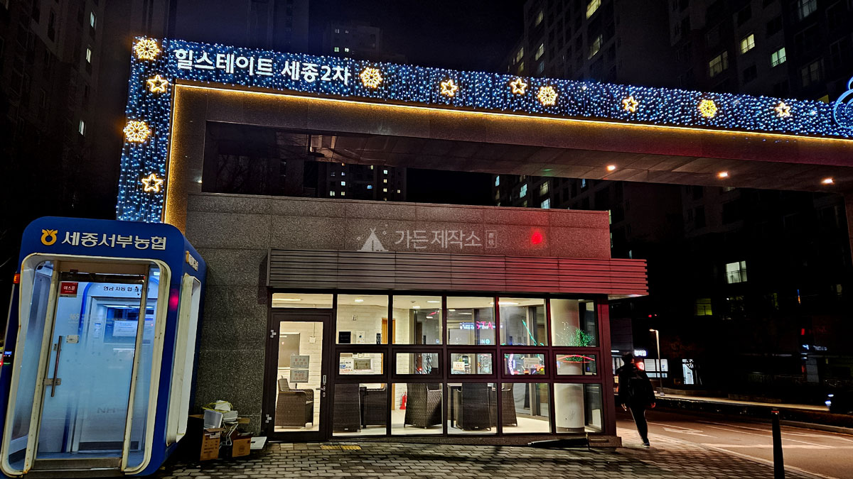 세종 가온마을vtn_garden2026-03-06T12:25:36+09:00 시공사례전체보기관공서아파트호텔·펜션·리조트·캠핑장카페·음식점상업공간기타전체보기관공서아파트호텔·펜션·리조트·캠핑장카페·음식점상업공간기타전체보기관공서아파트호텔·펜션·리조트·캠핑장카페·음식점상업공간기타 세종 가온마을 설치장소 세종 가온마을 제품설명 대상지 내에 경관조명을 설치함으로써 빛을 활용한 감성적 주거환경으로 연말 분위기를 조성하고 입주민이 이용할 수 있는 쾌적하고 안전한 보행환경을 조성하였음. 관련 프로젝트들 힐스테이트 신촌 3월 6th, 2026 | 0 댓글 부산 연산하늘채 9월 22nd, 2025 | 0 댓글 삼성노블카운티 9월 22nd, 2025 | 0 댓글 군산 더샵디오션시티그랑시엘 9월 15th, 2025 | 0 댓글 하남 대명루첸 6월 23rd, 2025 | 0 댓글